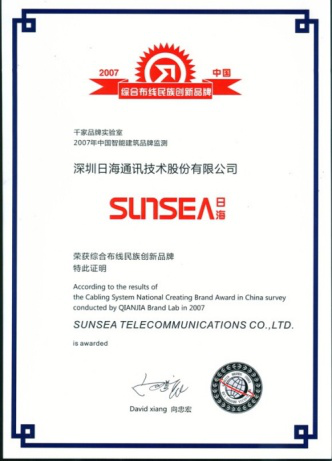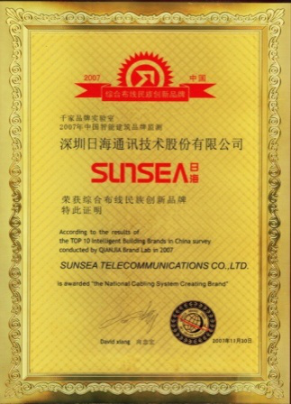 2007年11月29日~30日,kaiyun开云公司智能综合布线受邀前往上海光大会展中心酒店,参加由千家网筹办的“2007年第八届中国国际建筑智能化峰会暨颁奖典礼”,获得了“布线民族创新品牌”特别奖项。